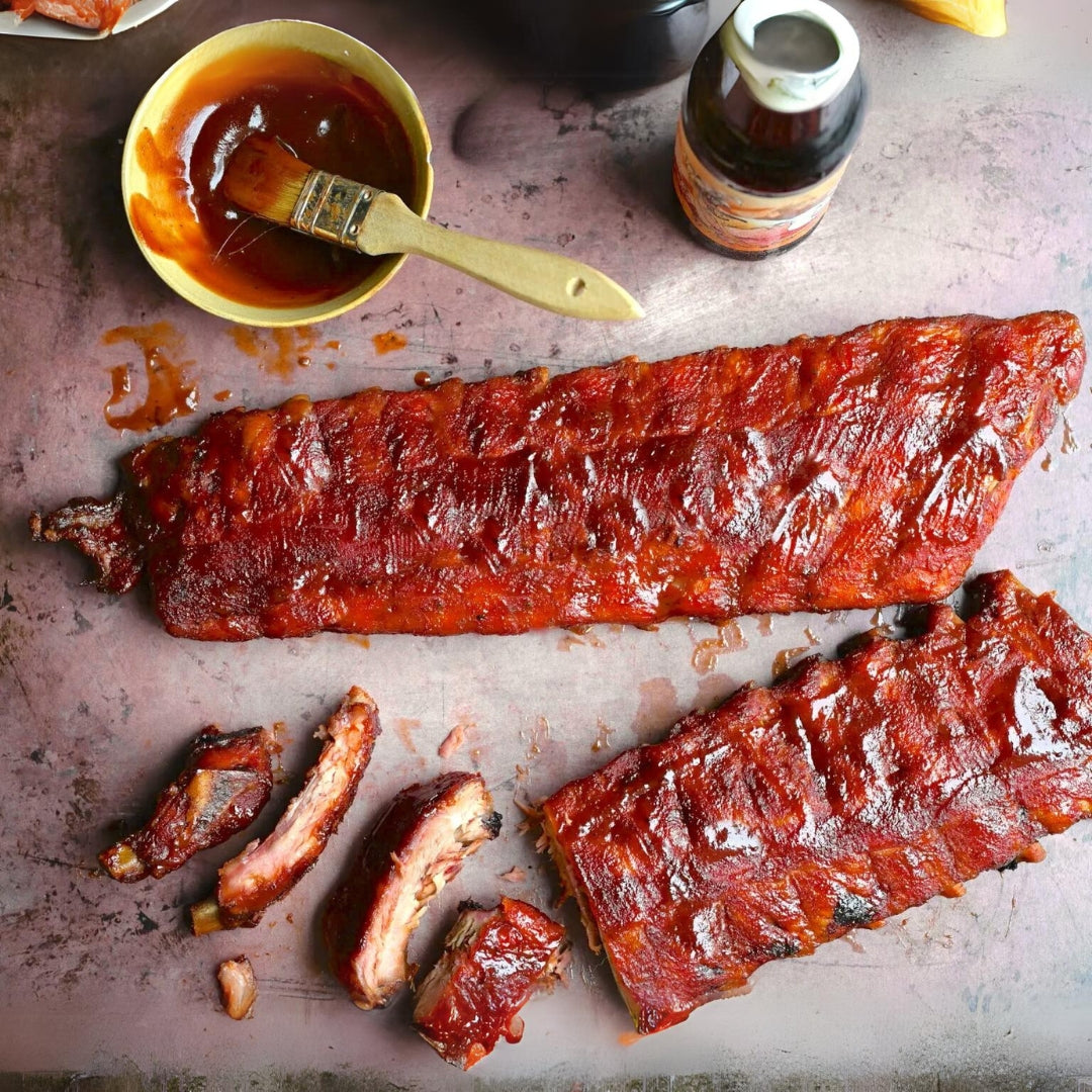 2️⃣ Saca las costillas de la bolsa y colócalas sobre una bandeja con alusa metálica.